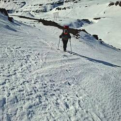 La montée sur la glace et dans la neige, crampons aux pieds, nos yeux brillants en activité permanente.