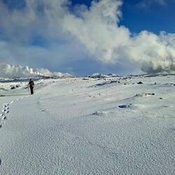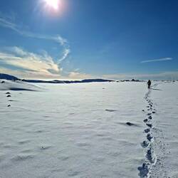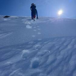 Et aujourd'hui, sous le soleil, on a pu faire notre première longue vadrouille - et physique aussi pour une reprise, avec 5h de marche dont une bonne partie dans la neige 💪 !