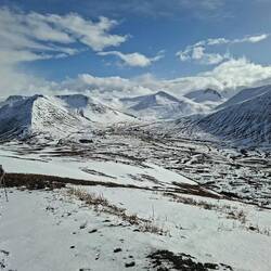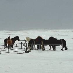 Rien à voir à nouveau avec les régions précédentes, quelle diversité dans ces paysages arctiques ! Ici, c'est beaucoup plus plat, c'est la steppe qui domine, immenses prairies dorées parsemées de rares fermes, mais qui abritent des centaines de chevaux !