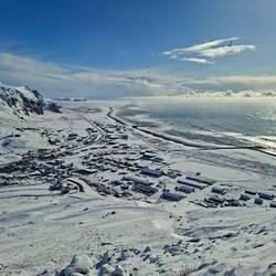 On est arrivés hier soir sous un grand soleil, avec, en regardant en direction du nord, l'océan et rien d'autre que, encore très loin, le pôle nord.