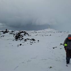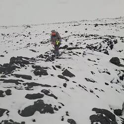 Voilà un truc qu'on n'avait pas encore fait en Islande ! Vadrouille en montagne dans les nuages ! Ce n'est pas pour ça qu'on est allé ici aujourd'hui, mais c'est ce qu'on a trouvé comme conditions météo sur la moitié supérieure du parcours ! Remarquez, ça donnait un charme très islandais !