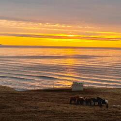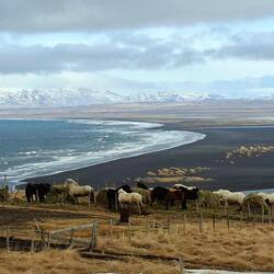 Il faut dire que le cheval ici, l' "Islandais", seule race de chevaux présente en Islande (!), c'est quelque chose ! Il y en a plus de 80.000, soit 1 cheval pour 4 habitants ! C'est comme si en France il y avait 18 millions de chevaux ! L'islandais est apparu ici au 9e siècle, apporté par les vikings, et depuis la race est restée on ne peut plus pure pour une raison très simple : il est formellement interdit d'importer des chevaux en Islande, et cela depuis le 10e siècle ! Cela fait plus de 1000 ans qu'il n'y a que des chevaux de pure race "islandais" dans ce pays ! Et même si vous voulez faire de l'équitation en Islande, il est interdit d"amener votre propre équipement, pour ne pas amener de "nouvelles" maladies d'autres races de chevaux ! Les 80.000 Islandais ont ici 2 fonctions : la promenade et rattrouper les moutons ! Étonnant tout cela !