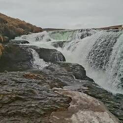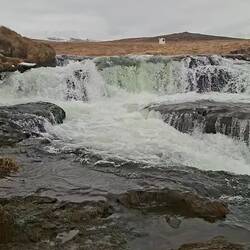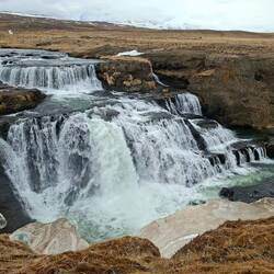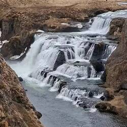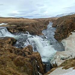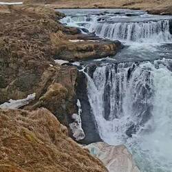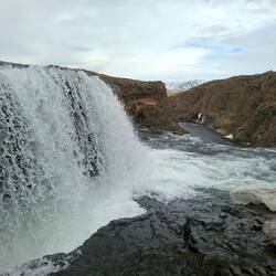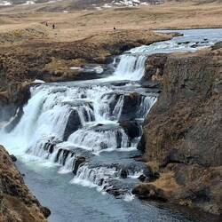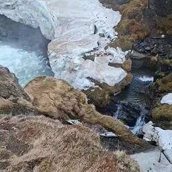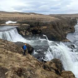 Puis s'extasier devant l'impressionnante cascade de Reykjafoss, qui dégringole de façon spectaculaire jusque dans une gorge... Dégringolade qui commence... juste à la sortie du trou d'eau chaude ! Il ne faut pas se tromper de sortie dans ce trou d'eau chaude !