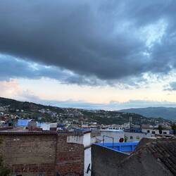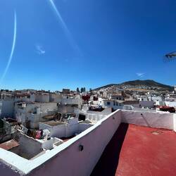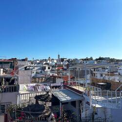 On quitte chaouen direction tetouan 🚌. Réveil matinal puis arrivée dans la ville blanche et accueillis avec un super thé sur le rooftop avec la vue époustouflante