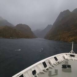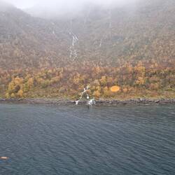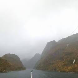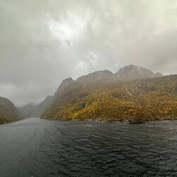 Zugang zum Trollfjord, heute im Nebel und bei Regen