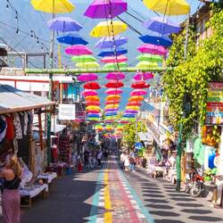 Von dort ging es für uns wieder mit dem Boot weiter nach San Juan, wo wir einen kleinen Spaziergang durch die lebhaften Gassen machten. Die hunderten bunten Regenschirme, die über den Straßen hängen, sind dabei ein tolles Fotomotiv. ☂️ 📸
