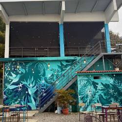 Am nächsten Tag reisten wir weiter zur Blumenstraße, der sogenannten Ruta de Flores. Diese etwa 42 km lange Strecke verbindet mehrere kleine Dörfer und ist bekannt für guten Kaffee, Streetfood und bunte Wandmalereien. Wir blieben drei Nächte in Concepción de Ataco und erkundeten von dort auch andere Orte wie Juayúa. In Juayúa machten wir die Wanderung „Siete Cascadas“ (7 Wasserfälle) durch den Dschungel. Die Hitze von etwa 34 Grad machte uns dabei ganz schön zu schaffen. Als Belohnung gab es später Pizza und ein kühles Getränk.