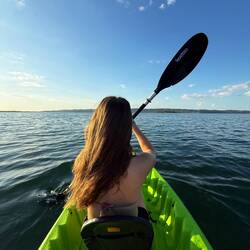 Am Tag unserer Ankunft erkundeten wir die Insel zunächst zu Fuß und liehen uns gegen Abend ein Doppel-Kajak aus, um den See zu erkunden. Auch den Sonnenuntergang genossen wir vom Wasser aus.