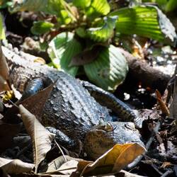 Für Tikal organisierten wir lediglich den Transport und erkundeten die Tempelanlage etwa 4 Stunden lang zu Fuß. Einige Tempel sind vollständig freigelegt, andere nur teilweise. Das Highlight von Tikal ist der Tempel IV, der mit seinen ca. 65 Metern Höhe der höchste Tempel der Anlage ist und weit aus dem Dschungel herausragt. Von oben hat man einen beeindruckenden Blick über das Blätterdach, aus dem mehrere andere Tempelspitzen hervorragen. Während unserer Erkundung sahen wir Klammer- und Brüllaffen, Nasenbären, Eichhörnchen und sogar ein kleines Krokodil in einem Sumpf. Erst in der vergangenen Woche berichteten Besucher, dass sie beobachtet hatten, wie ein Jaguar am helllichten Tag einen Nasenbären erbeutete. 🐆
