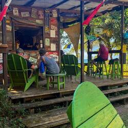 Von Boquete machten wir uns auf zum letzten Spot in Panama – der Inselgruppe Bocas del Toro in der Karibik. Hier erwarteten uns die typischen „Postkartenstrände“ und türkisblaues Wasser. Am Tag nach unserer Anreise buchten wir einen Tagesausflug zur „Isla Zapatilla“. Auf dem Weg dorthin konnten wir bestimmt 20 Delfine 🐬 beobachten und waren bester Laune. Dann kam allerdings ein großer Schauer, und wir mussten erst einmal auf einem schwimmenden Restaurant Unterschlupf suchen und warten, bis der Regen aufgehört hatte. Weiter ging es dann mit dem Boot zu einem weißen Karibikstrand und zum Schnorcheln (was okay war). Auf dem Rückweg versuchten wir dann noch, Faultiere auf den „Sloth Islands“ zu finden, und wurden auch fündig: fünf Tiere konnten wir – mal mehr, mal weniger gut– beim Nichtstun beobachten. Die nächsten beiden Tage erkundeten wir dann noch mit Roller und Fahrrädern die Hauptinsel Colón und konnten im Norden Seesterne im Wasser entdecken und im Osten den für uns schönsten Strand der bisherigen Reise: Playa Bluff. 🛵☀️