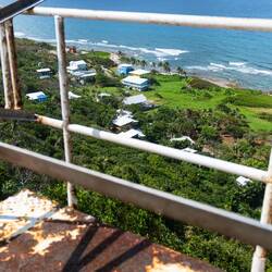 An einem Tag wanderten wir auf die Nordseite der Insel und „hoch“ zum Pumpkin Hill. Mit knapp 50 Metern ist er der höchste Punkt der Insel. Dort steht ein etwas in die Jahre gekommener Leuchtturm, den man von innen besteigen kann. Von oben hat man eine tolle Aussicht über die gesamte Insel und das umliegende Karibische Meer.