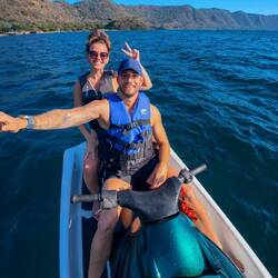 Am nächsten Tag ging es für uns nach Santa Ana, wo wir zwei Nächte blieben. Hier hatten wir zwei Programmpunkte vor uns. Am Kratersee Coatepeque liehen wir uns einen Jetski und umrundeten den See. In der Mitte liegt eine kleine Insel, die einst ein religiöser Ort der Maya war. Die Gegend ist wunderschön, allerdings sind die Zugänge zum See größtenteils privat – ans Wasser kommt man fast nur über Restaurants, Hotels oder Beachclubs.