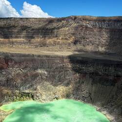 Nach einem für uns überraschend milden Aufstieg – wir hatten noch die Strapazen des Acatenango im Kopf – erreichten wir den Vulkankrater. Dort liegt ein beeindruckender, giftgrün schimmernder Kratersee. Seine intensive Farbe entsteht durch hohe Konzentrationen von Schwefel und Mineralien im Wasser, was ihn zwar faszinierend, aber auch hochgiftig macht. Nach einer kurzen Pause ging es für uns wieder zurück zur Busstation, um den früheren Bus nach Santa Ana zu erwischen.