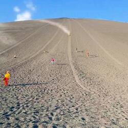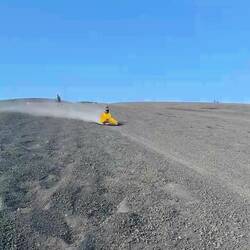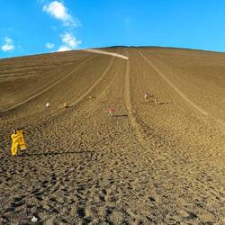 Oben angekommen erkundeten wir erst einmal die Vulkanlandschaft und den Krater. Der Boden hier oben ist teilweise extrem heiß – aufgrund der unterirdischen Lavaströme. Gegen 17:30 Uhr ging dann das Sandboarding los. Der Reihe nach legten wir uns auf die Bretter und fuhren – mal schneller, mal langsamer – die knapp 500 Meter zurück an den Fuß des Vulkans.