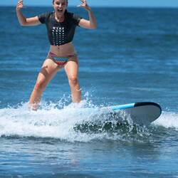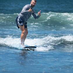 Weiter ging es mit einem kleinen Shuttlebus an die Pazifikküste Panamas. Fast eine Woche verbrachten wir im kleinen Küstenort Santa Catalina, der vor allem durch das Surfen sowie den angrenzenden Coiba-Nationalpark berühmt ist. In Santa Catalina machten wir endlich unsere ersten Surfversuche und stellten uns nach einer Stunde Privatunterricht schon ganz gut an. 🏄♂️ Die Bedingungen am Playa El Estero sind für Anfänger perfekt, da man über Hunderte Meter langsam ins Meer hineinlaufen kann und die Wellen genau die richtige Größe (für uns) hatten. Das Surfen machte uns so viel Spaß, dass wir auch an zwei weiteren Tagen Boards ausliehen und immer wieder unser Glück auf den Wellen suchten. 🌊