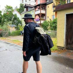 In kurzer Hose, aber mit dem Parka im Rucksack – man ist ja nicht ganz verrückt.