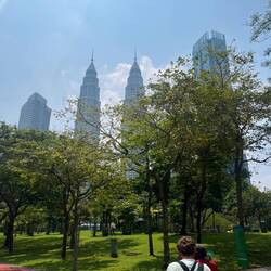 On marche ensuite jusqu’à la mosquée nationale. Comme la précédente, on fait juste le tour par l’extérieur. On va ensuite vers le jardin botanique qui est immense. Il y a plusieurs parties comme le parc des oiseaux, des papillons, etc mais on est fatigué, ça ferme bientôt et c’est payant. Alors on décide de rentrer en ville pour monter à la tour de Kuala Lumpur. On prend un Grab et une fois dans la voiture Bab s’aperçoit qu’il a oublié sa sacoche… Panique à bord, le chauffeur est obligé d’aller jusqu’au point de dépose puis il refait l’aller-retour. Ouf la sacoche est toujours là, donc pas de papiers à refaire, mais tout le liquide qu’il avait n’y est plus…
