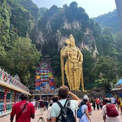 Aujourd’hui, on se réveille pour aller voir Batu cave : une grotte dans et autour de laquelle des temples hindous sont construits. C’est pas trop l’avis de tt le monde (#tit) mais je trouve ça super joli, y’a pleins de couleurs. On mange indien puis on repart au centre-ville visiter le parc qui se trouve derrière les Petronas towers, et le centre commercial. C’est LE centre commercial du luxe avec toutes les grandes marques. On rentre à l’auberge récupérer nos affaires et direction la gare routière. On n’a failli louper le bus, mais juste failli…