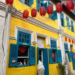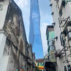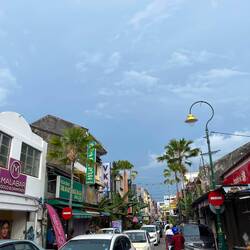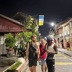 On marche vers le quartier chinois, où on découvre Petaling street : une rue où il y a un marché de fringues, accessoires… On trouve un boui-boui local, où on mange des « pearl noodles ». On continue après manger à se balader dans le quartier. C’est super mimi, y’a plein de petits restos, de petites rues, de tags... Ça contraste vraiment avec le centre-ville.