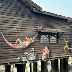 On a sillonné toutes les petites rues à la recherche des fameuses peintures de street art, regardé un peu les magasins de touristes, et le quartier indien. On est ensuite allé voir les quais sur lesquels un monsieur avec 2 pouces a essayé de parler à Titouan : incompréhensible. Puis coucher de soleil sur les fameux « Chew Jetties », des espèces de petits villages flottants qui appartenaient tous à un clan chinois différent. On va ensuite manger dans un food court où il y a un concert. On y passe toute la soirée puis dodo. Demain une journée de transports nous attend.