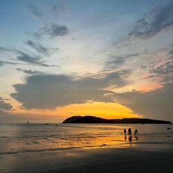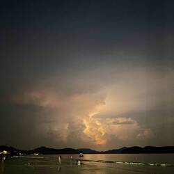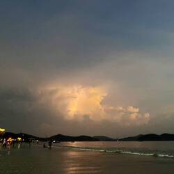 On décide d’aller sur la plage Cenang voir le coucher du soleil : un des plus beaux de tout mon voyage. Le soleil se couche derrière une petit île, et donne des couleurs magnifiques aux nuages. La plage est animée, il y a des jetskis, des bateaux en pagaille. Et pour couronner le tout : il y a un orage un peu loin mais super visible. On voit les éclairs c’est ouf. On passe un bon bout de temps, même après le coucher du soleil, à contempler le spectacle puis on va manger dans un resto sur la plage et dodo.