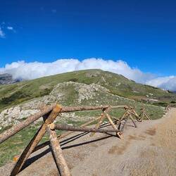 As you ride, on one side of you there are trees, rocks cliff faces soaring up, and on the otherside is the clear view of distant snow topped mountains towering over a valley, a meadow, a river and the roadbed bearing the dust that you just kicked up.
