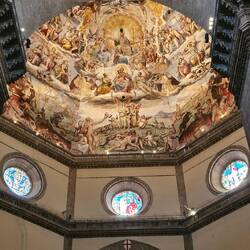 The dome is overwhelming. Of course the entirety (inside and out) is filled with art, history a d beauty, but the dome which is octagonal, is the centerpiece. It us a series of frescos and is stunning to see from the floor. But if one is willing to do the 437 steps (we did not), one could see it all much closer.