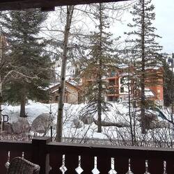 The boys took right to it! No surprise there. Sam met a ski instructor on the lift who offered him a free 30 minute lesson which he happily took. We all skied at our own pace and met up here and there. The boys definitely out skied us! We skied until we got hungry then went back to the condo for a late lunch and to rest a bit. Sam was feeling slightly under the weather. Might have been the altitude? Pat and Jacob went back out for a couple more hours of skiing. We all hit the hot tub. It felt GREAT! The trees around us decorated with Christmas lights...
