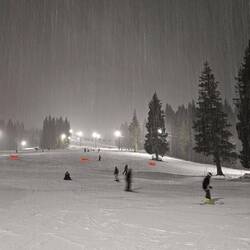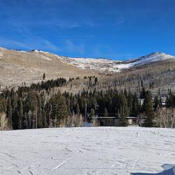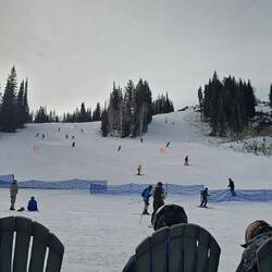 I only did one run. I loved it, but my thighs were cooked! I knew I would hurt myself if I kept skiing. I hung out on the deck under an overhang ,hot chocolate in hand, listened to the Christmas music over the loudspeakers, watched the snow fall and the skiers coming down! It was heavenly!!