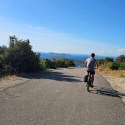 The beginning of today's ride was the same as yesterday. We climbed out of the bay, up through the olive groves.