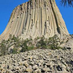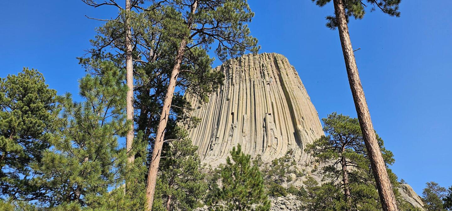 Devils Tower of course is the unique mountain formation featured in the movie 'Close Encounters of the 3rd Kind'.