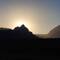 The sun above the horizon but not yet surpassing the height of the mountain range.