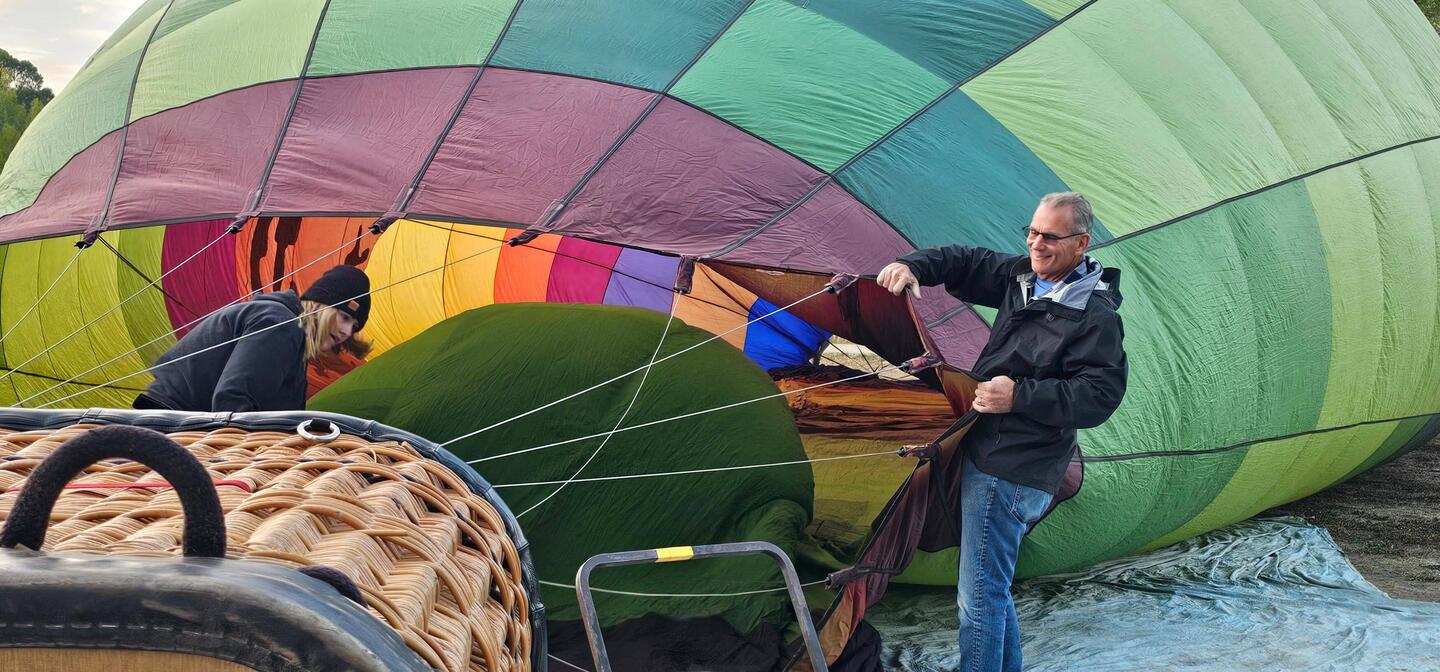 I really wanted to experience this with Pat...I knew he would love it. It did not disappoint. After the flight we got to be part of the crew again and help bring the balloon down and pack it up. It wasn't required, but they were short handed and it was fun to help. We were lucky and very thankful because the flights the day prior and most likely the rest of the week were cancelled because of weather.Meer informatie