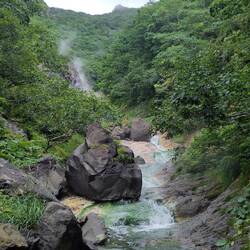 Le matin j'ai remonté une cascade à pied puis je suis allé de l'autre côté au point le plus au Nord-Est du Japon (fou je sais)