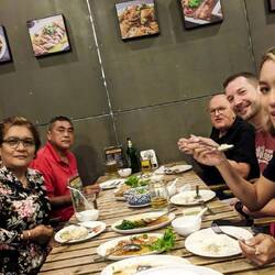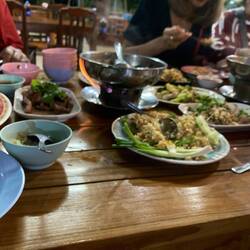 Wie immer Essen. Ein Chang darf nicht fehlen. Das Essen ist so günstig. 23.-für 6 Personen und viele verschiedene Speisen und Trinken und Nachspeise. Kaum zu glauben..