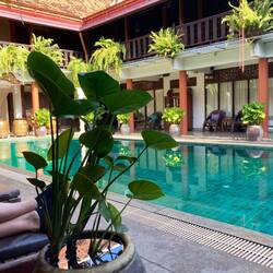 Nach dem Frühstück immer Kaffee Latte. Nachher eine Beinmassage. Bei Blue Noodles eine Suppe. Es ist immer voll Leute. Immer mit Mirka eine frisch Mango genommen. Dann im Hotel ausruhen.