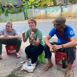 Dann ins Hoel wo mich Bee mit Kaffee Willkommen heisst. Dann die Runde mit Bodo. Morgen geht es los. Die Paste für Khaw soi gekauft.