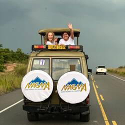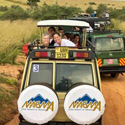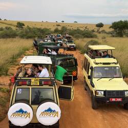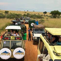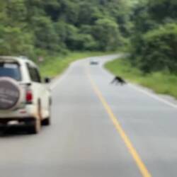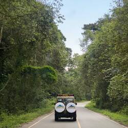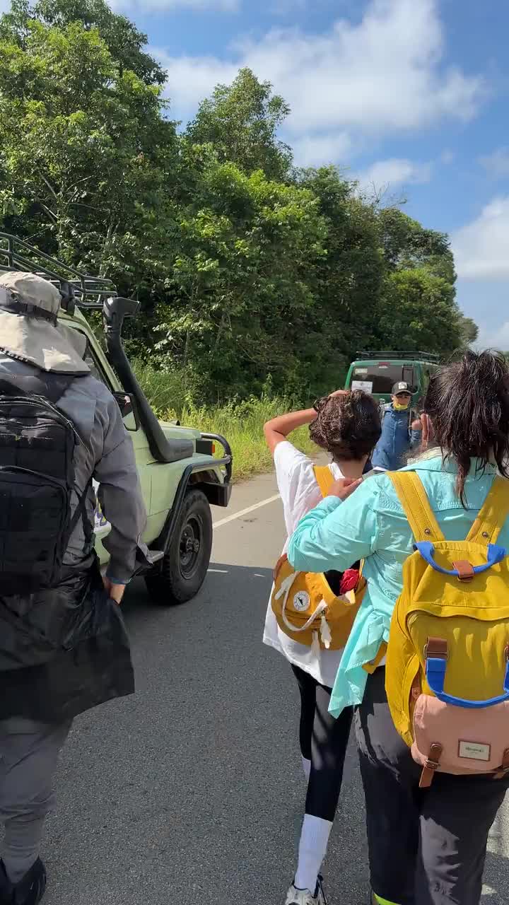 What a very lucky and successful day that the chimpanzees that require 250$ to track them just passed crossed the road by coincidence when tourists had stopped along the road for a break 🙌✅