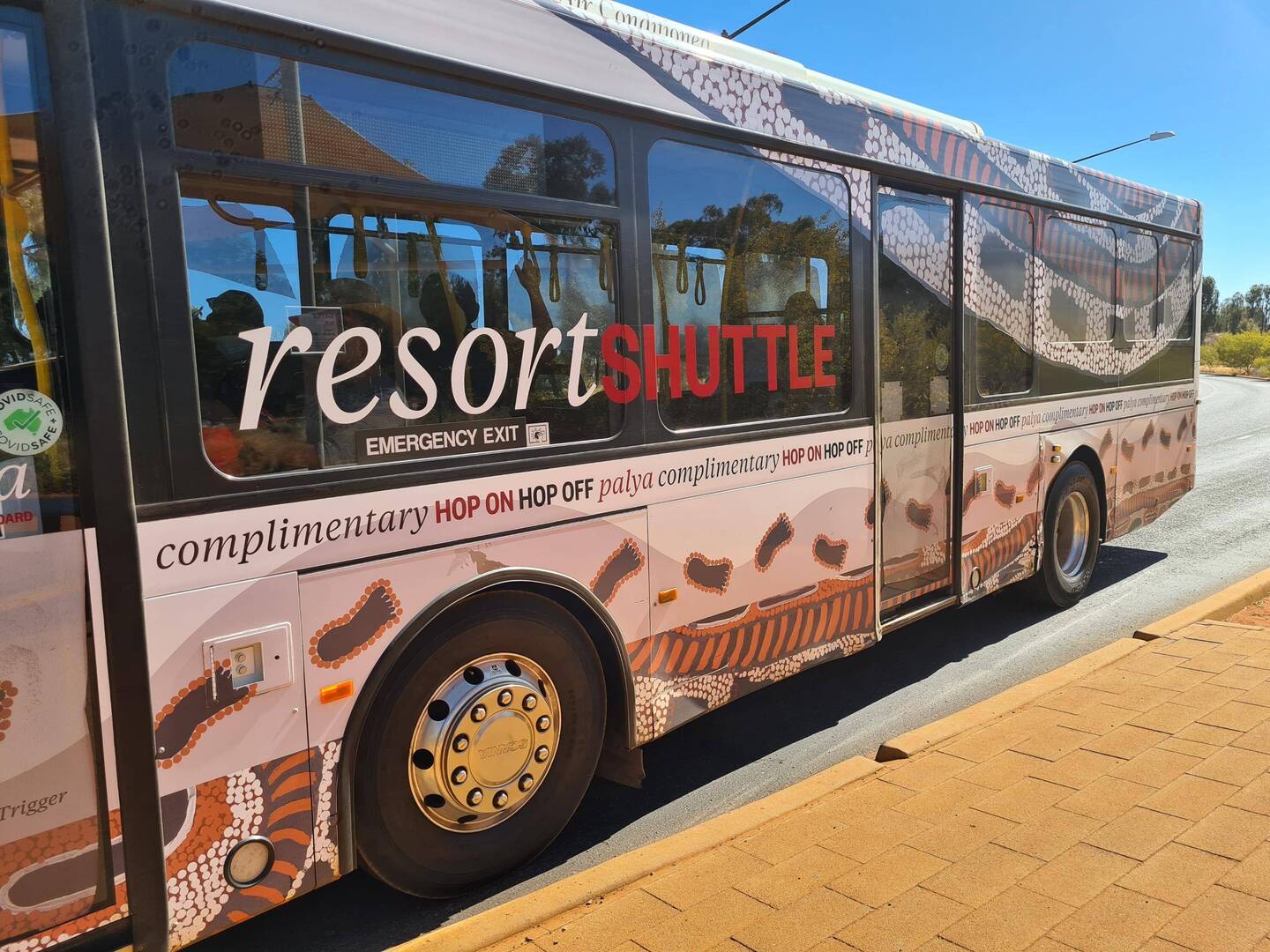 Now for a shuttle bus ride to the Hotel Section of Ayers Rock Resort. The resort is really spread out and we did not want to walk. So bus ride it is.