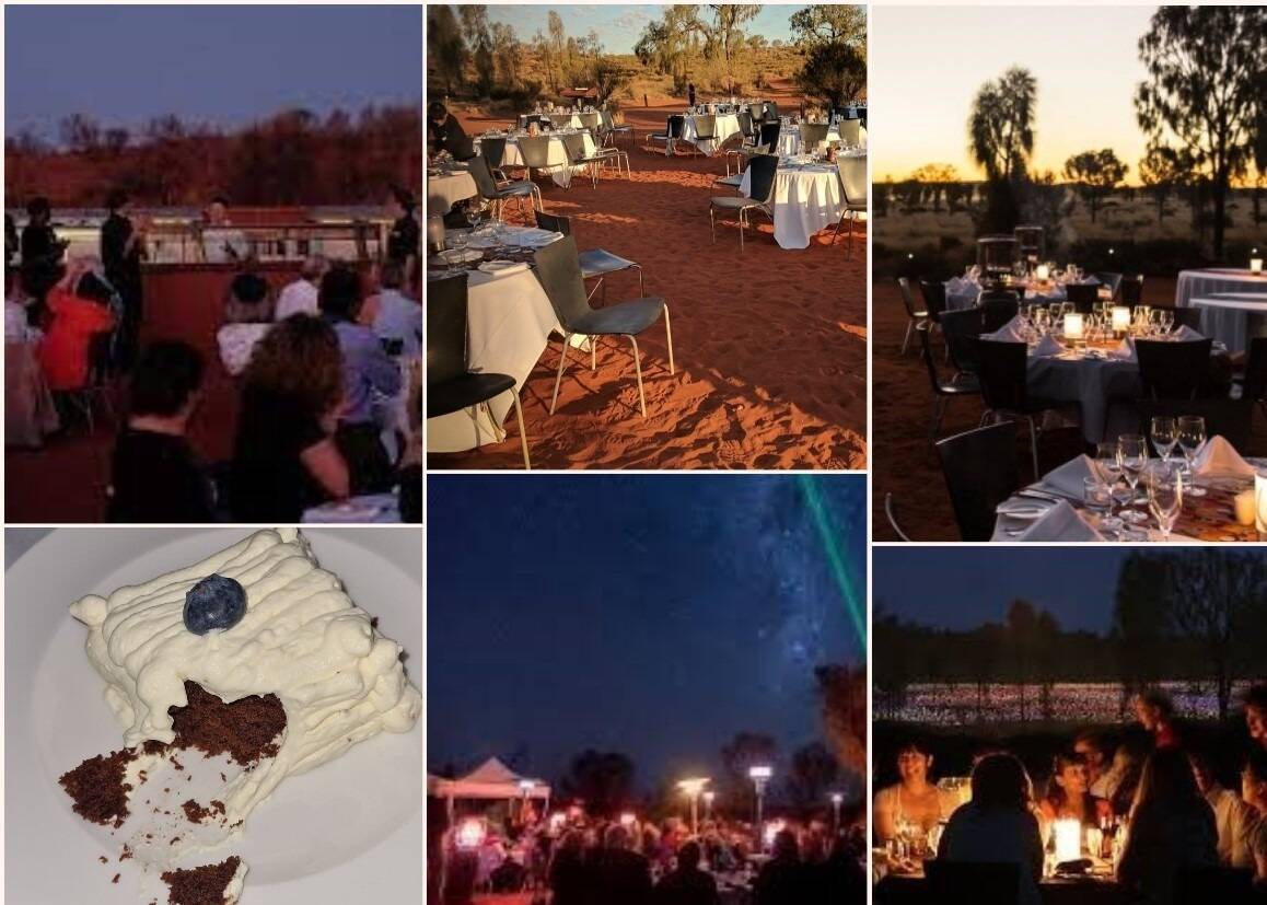 The agenda is Scenic Flight around Uluru, morning tea, lunch, afternoon tea, Sounds of Silence Dinner and Field of Lights.
