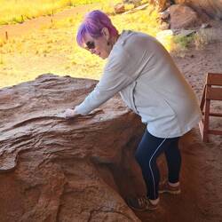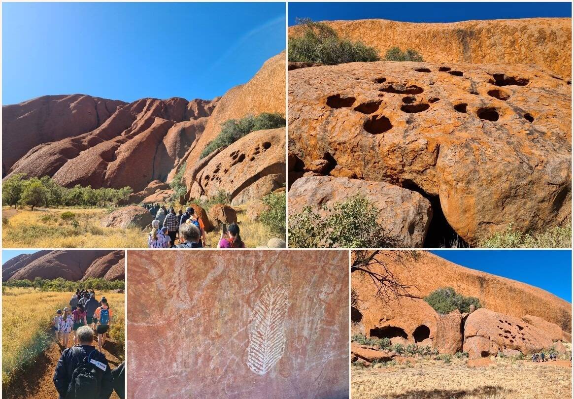 We walked around the edge of the Rock and viewed caves where the Mala people camped when they first arrived at Uluru. ILæs mere