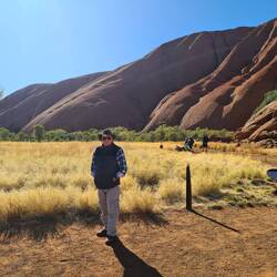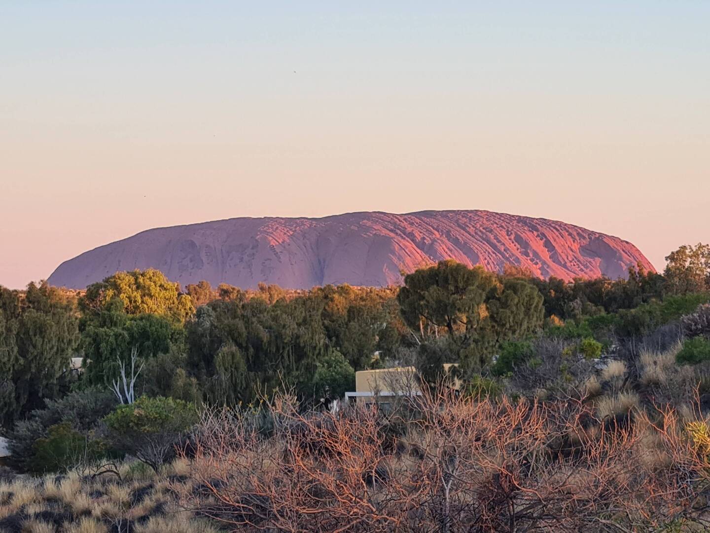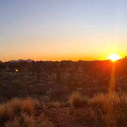 A quick walk to a small peak in the campground to take photos of the Rock as it changes colour from the Sunset. Whilst the sun does not set over Uluru you can see the colour changes as the sun sets.Læs mere
