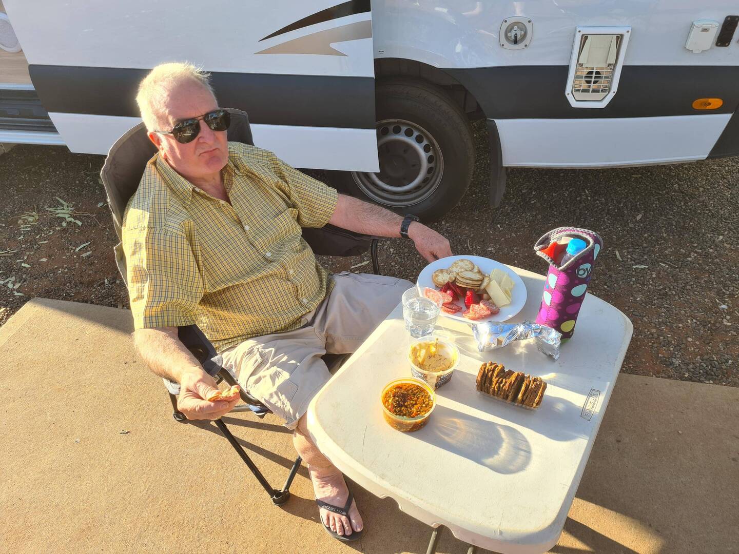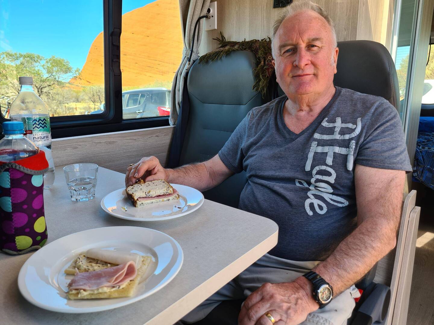 The Rock is a mighty structure and deserved a "cheers" so morning tea was a necessity. Having the Motorhome meansLæs mere
