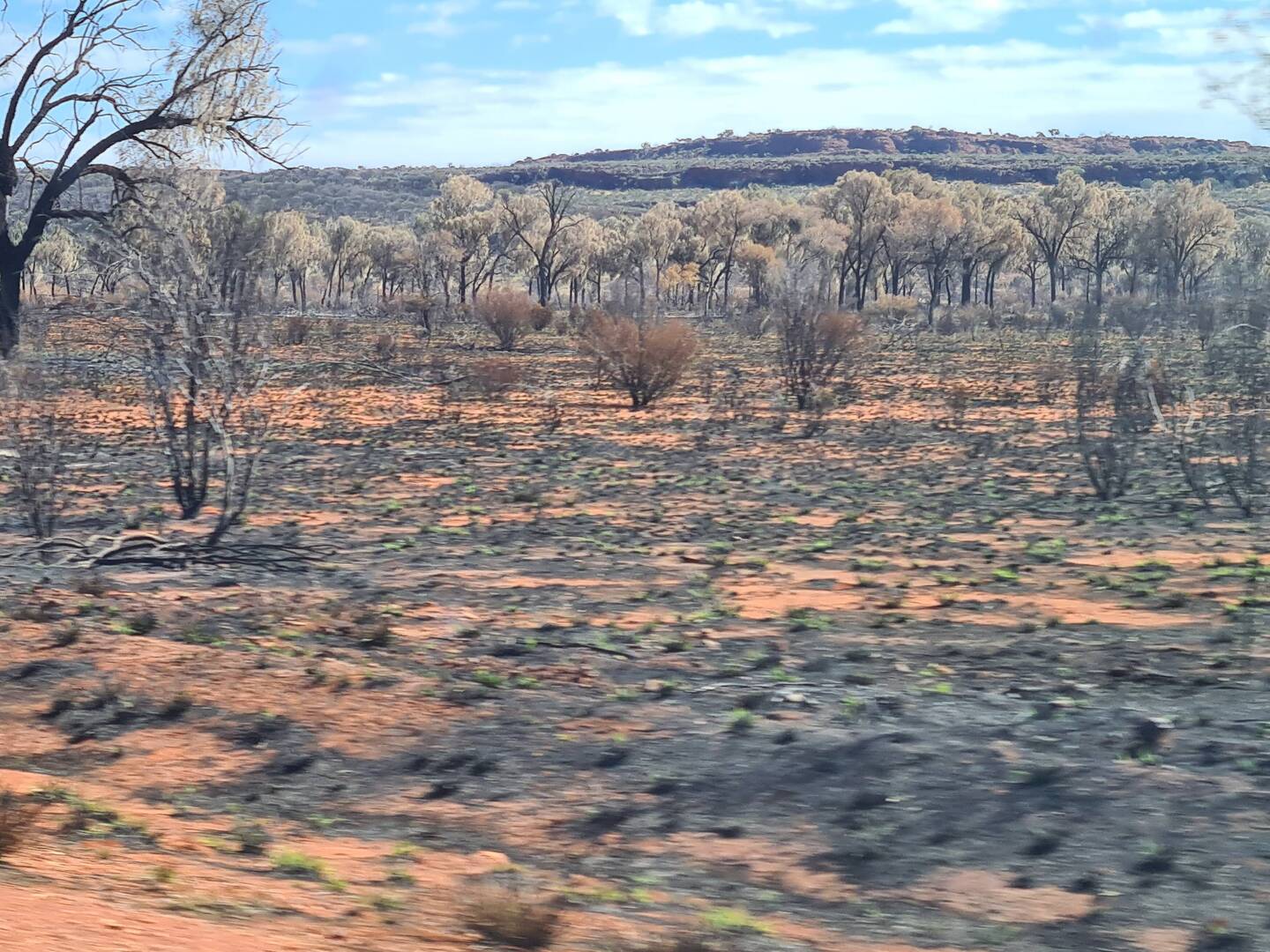 20 km from the Canyon there must have been a lightning strike recently as the trees and spinifex grasses have been burnt and you could still smell the fire ashes.