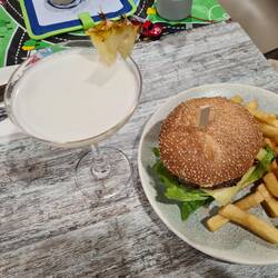 Dinner out as it is our last night, hamburger and a beer for John and Salad and a cocktail for me.