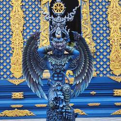 Inside, the Blue Temple is a kaleidoscope of colour and patterns, with elaborate and unbelievably intricate paintings completely covering every surface. Like most Thai temples, the walls depictRead more