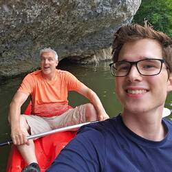 Door een mooi natuurgebied gelopen en daarna in een fluisterbootje Dinant bekeken vanaf het water.😍 'S avonds film gekeken en chips gegeten (Dorito's met chili dip😍😍).🥳