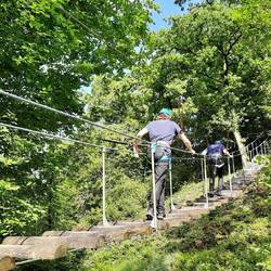Vandaag vroeg begonnen met een klim challenge. Begon met een matige klim en de brug op 20 meter van 100 meter lang viel ook erg mee. Daarna gelukkig wel 2 ziplines en een rotswand beklommen.