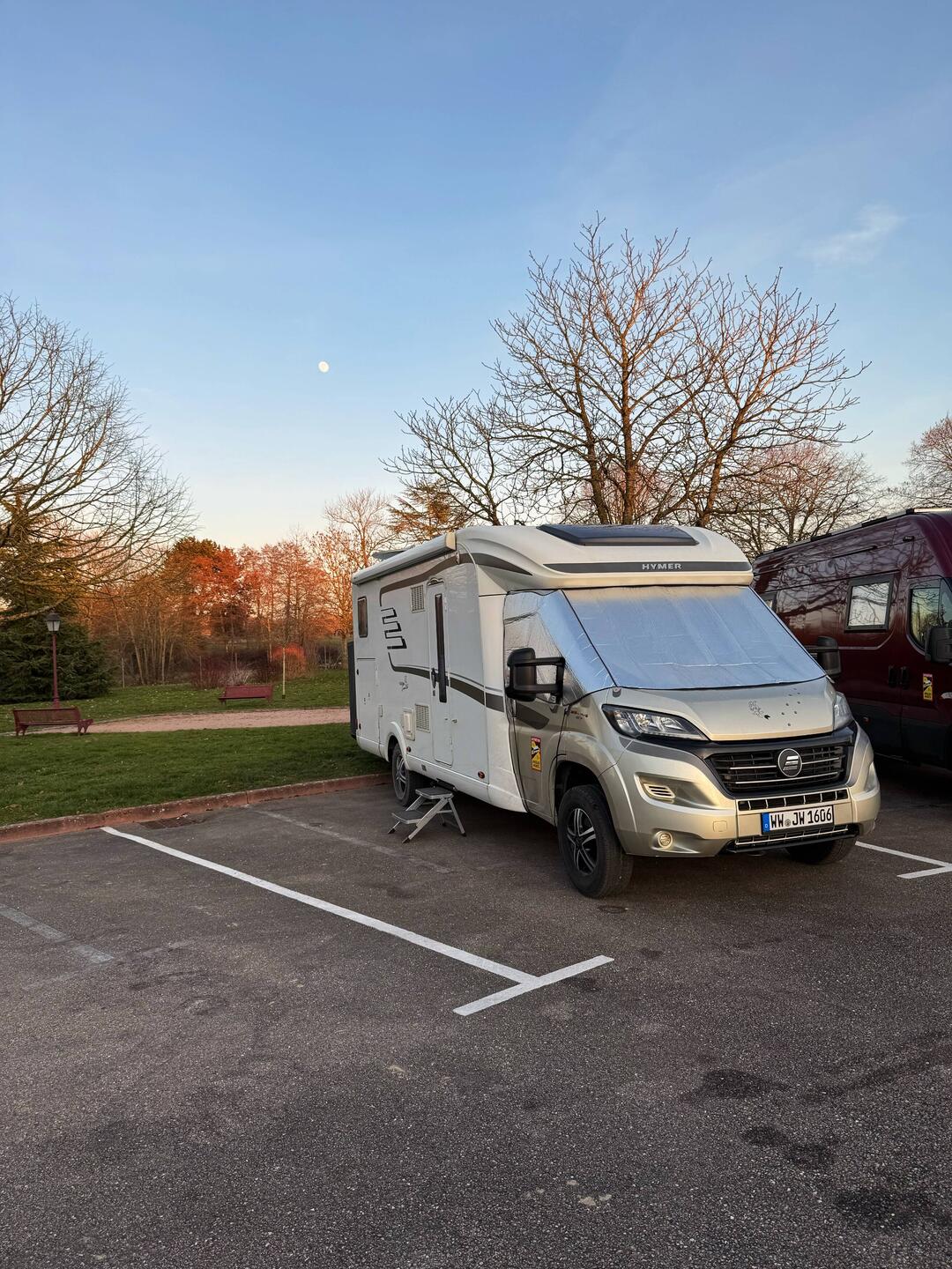 Bei ungemütlichen 0 Grad ging es bei leichtem Schneegestöber durch die Eifel über Trier und Luxemburg. Dort haben wir wie immer nochmal voll getankt und noch etwas eingekauft.