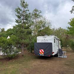 Wir sind nochmal ca. 65 km weiter südlich gefahren und wollten auf einen 5 Sterne Campingplatz. Der war tatsächlich immer noch komplett belegt. Aber Mitte nächster Woche werden einige PlätzeLeggi altro